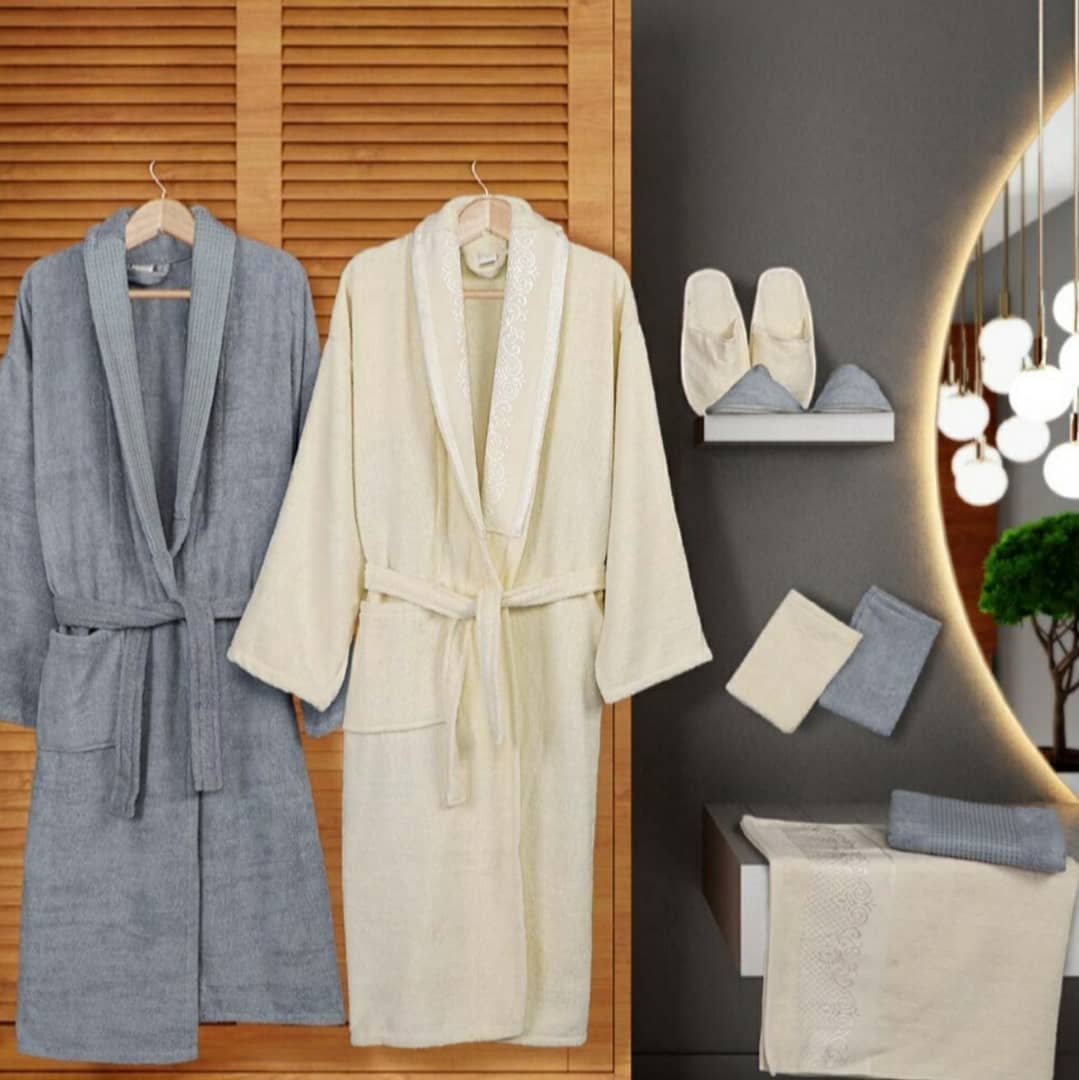 + شحن سريع*طقم أرواب أستحمام راقي جدا عرائسي زمرد سوري مزدوج صنع من أفضل درجات القطن الفاخر بألوان مميزة تمنحك الشعور بالدفء بعد الاستحمام* بلد الصنع : سوريا 🇸🇾 نوع القماش قطن 100% له خاصيه أمتصاص عالية وثبات اللون